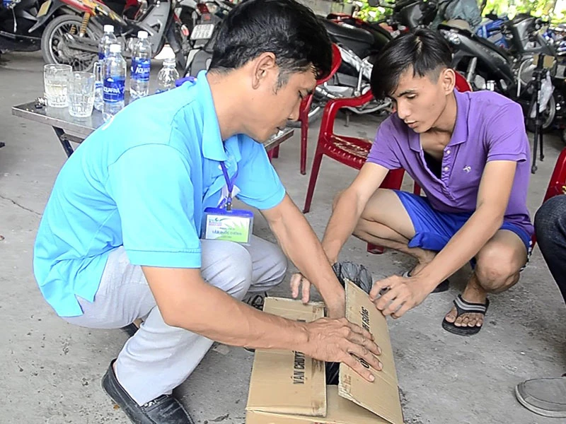 Chiều 29-6, đại diện Thảo Cầm Viên Sài Gòn đã đến nhà người dân để tiếp nhận cá thể chim cổ rắn quý hiếm. Ảnh H. Tâm.