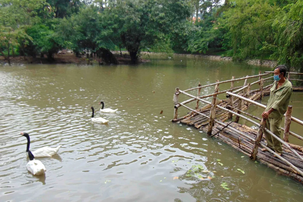 Thiên nga, ngan, gà, vịt, chim trích… được nuôi trên đảo nhỏ nhiều cây xanh, chung quanh bao bọc bởi hồ nước trong vắt. Những loài nói trên rất háu đói, thức ăn để xuống một chút là hết ngay. Đâu chỉ vậy, chim tự nhiên đủ loài canh đúng giờ bay tới ăn ké, hót vang trời nghe vui tai khiến khách tham quan cảm nhận khung cảnh thật yên bình.