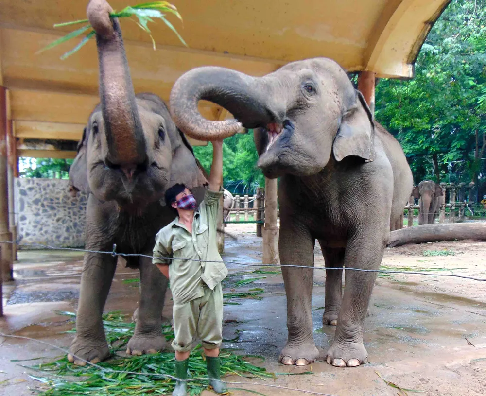 Mỗi ngày ông Tuấn chăm sóc và cho 6 con voi ăn. Ảnh: TRẦN NGỌC