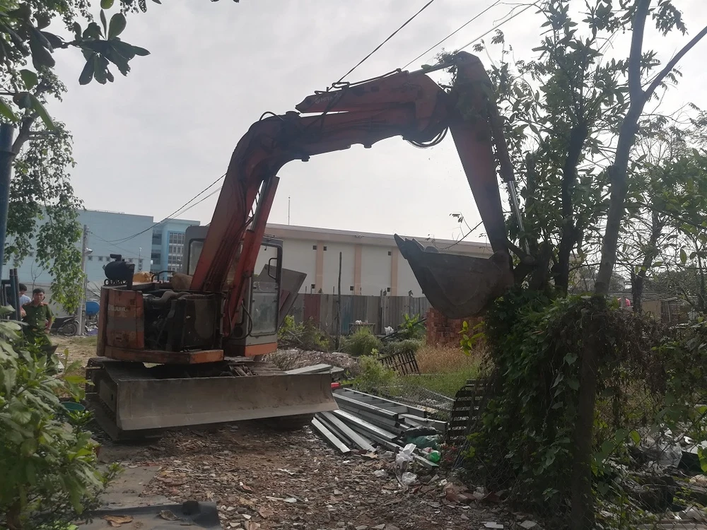 Lực lượng chức năng cưỡng chế năm công trình không phép ở phường Linh Trung, quận Thủ Đức ngày 4-12. Ảnh: THANH TUYỀN
