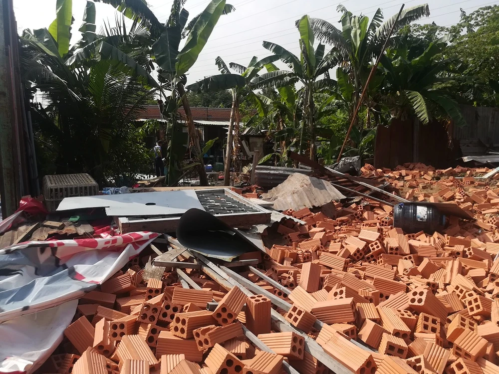 Năm công trình này nằm liền kề nhau trong một khu đất, thuộc sở hữu của năm hộ dân khác nhau. Trong ảnh: Hiện trạng một căn nhà đã bị cưỡng chế trong sáng 4-12. Ảnh: THANH TUYỀN