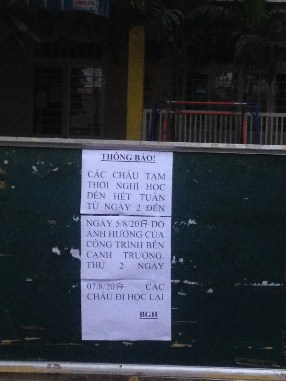 Trường mầm non buộc phải thông báo nghỉ học cho phụ huynh. Ảnh: KIỀU VŨ
