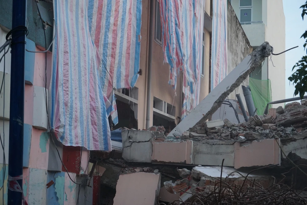 “Chúng tôi nghĩ là đơn vị tháo dỡ sợ bụi bặm nên đã di dời các cháu sang học phòng khác. Đến khi công trình tháo dỡ thì ai cũng hoảng sợ vì cả bức tường bị đổ sập. May mà các cháu và giáo viên đều đã đi chỗ khác” - bà Hải thuật lại.