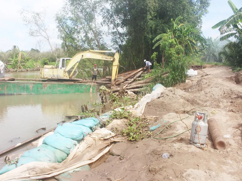 Ngày 8-8, ông Nguyễn Văn Điền- Giám đốc Ban QLDA các công trình NN&PTNT tỉnh Bến Tre cho biết đang khắc phục tiếp sự cố sạt lở đường nông thôn và đê bao dọc sông Ba Lai do quá trình đơn vị thi công tháo dỡ đập tạm ngăn mặn gây ra.