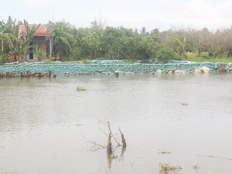 Phía bờ xã Tân Phú bị sạt lở khoảng 170 m2 đất của một hộ dân xuống sông gồm: 100m bờ bao và còn lại làm thiệt hại nhiều diện tích đất và cây ăn trái của người dân.