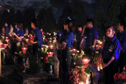 Tại lễ thắp nến tri ân, sau phút tưởng niệm, các đại biểu cùng đoàn viên, thanh niên đã tiến hành dâng hương tại Đài tưởng niệm các anh hùng liệt sĩ; tổ chức thắp nến tri ân, dâng hương, dâng hoa tại hơn 2.300 phần mộ liệt sĩ tại Nghĩa trang liệt sĩ TP Hà Nội.