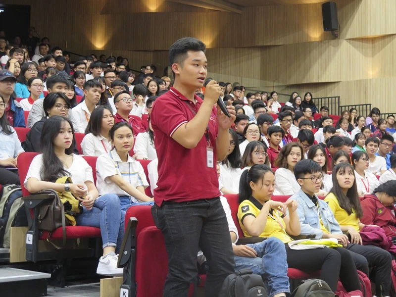 Sinh viên đặt câu hỏi cho các diễn giả. Ảnh:P. ANH