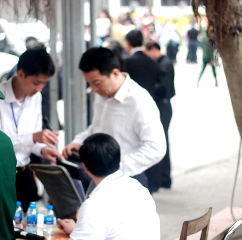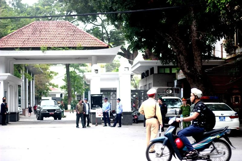 Các đơn vị công an, quân đội... đã được triển khai ở nhiều tuyến đường hướng về Nhà tang lễ Quốc gia để phân luồng cho các phương tiện di chuyển. Những người đến viếng đều được kiểm tra an ninh.