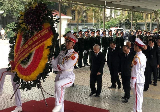 Đoàn Ban Bí thứ TW Đảng do Tổng Bí thư, Chủ tịch nước Nguyễn Phú Trọng làm Trưởng đoàn vào viếng. Ảnh: Dân Trí
