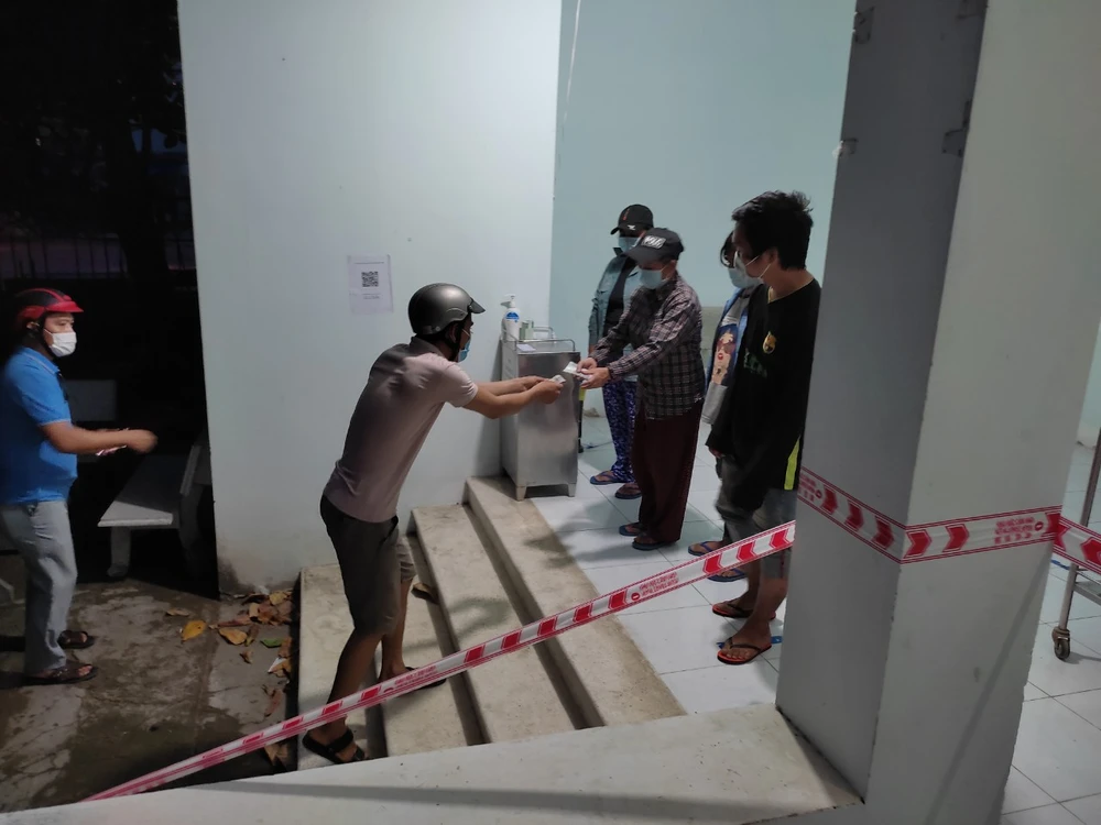 Họ vào khai báo y tế tại Chốt. Ảnh: NGUYỄN HẢI LÝ