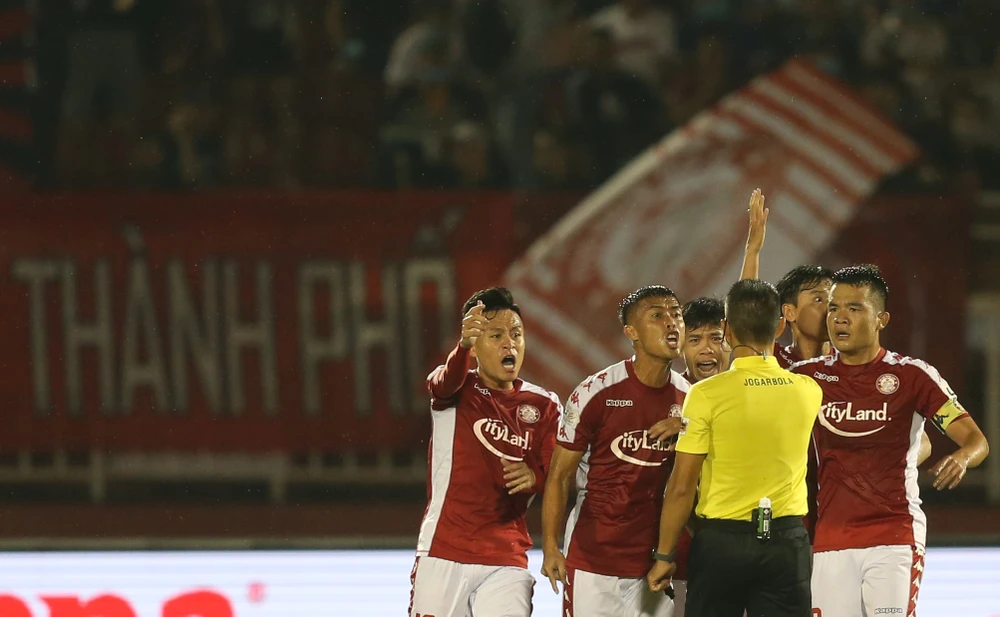 CLB TP.HCM thua 0-3 trước Hà Nội FC đầy hậm hực khi trọng tài không cho hưởng hai quả phạt đền ở hiệp 1. Ảnh: ANH PHƯƠNG