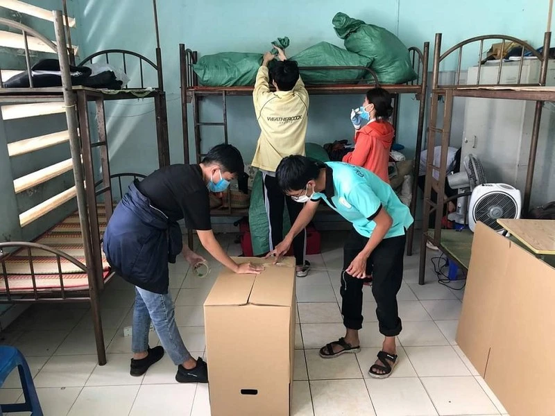 Giảng viên, sinh viên ĐHQG TP.HCM tham gia dọn dẹp KTX, bàn giao cơ sở vật chất làm khu cách ly. Ảnh: TL