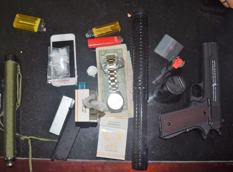 Nhật sau đó khai nhận gói bột màu trắng đó là ma túy tổng hợp dạng đá. Được biết khám xét trong người Nhật, công an còn phát hiện trong túi xách người này có một khẩu súng bắn đạn bi, một dùi cui điện, hai bình xịt hơi cay, một gậy ba khúc.