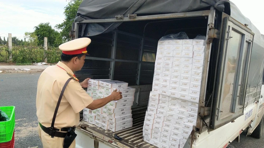 Ngày 8-8, Phòng CSGT đường bộ Công an tỉnh An Giang cho biết đơn vị vừa phát hiện và bắt giữ ba xe tải đang vận chuyển gần 4.500 bao thuốc lá ngoại nhập lậu.