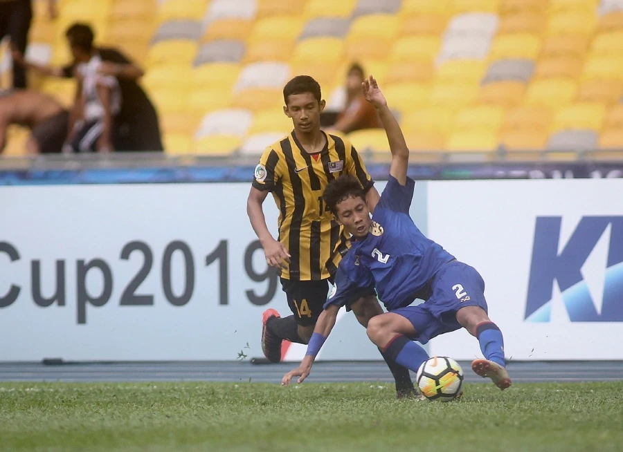 U-16 Malaysia trong trận thua U-16 Thái Lan 2-4