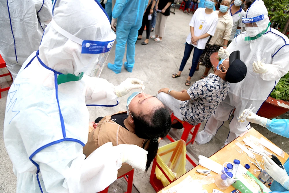Lấy mẫu xét nghiệm COVID-19 cho người dân quận Tân Phú, TP.HCM.