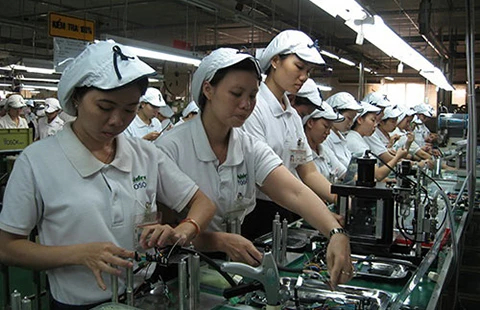 Công nhân của Công ty Nidec Tosok đang làm việc. Ảnh: AN