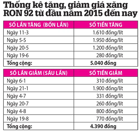 Từ đầu năm 2015, giá xăng dầu trong nước đã có sáu lần giảm và bốn lần tăng. Tuy nhiên, nhiều chuyên gia cho rằng mức giảm giá bán lẻ trong nước chưa tương xứng với giá thế giới. Trong khi đó, Tập đoàn Xăng dầu Việt Nam (Petrolimex) đã công bố báo cáo tài chính hợp nhất quý II-2015 cho hay Petrolimex đã đạt lợi nhuận hợp nhất sau thuế trên 1.125 tỉ đồng gần gấp ba lần cùng kỳ (cùng kỳ năm trước chỉ lãi khoảng 414 tỉ đồng). Như vậy tính chung sáu tháng đầu năm, Petrolimex lãi 1.586 tỉ đồng. Đáng lưu ý, chi phí tài chính sáu tháng đầu năm của Petrolimex là 1.524 tỉ đồng, tăng gần gấp đôi cùng kỳ năm 2014 nhưng Petrolimex vẫn đạt mức lợi nhuận kể trên.