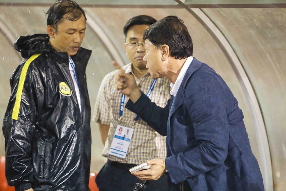 Thầy Chung đang bày kế cho HLV Dương Minh Ninh