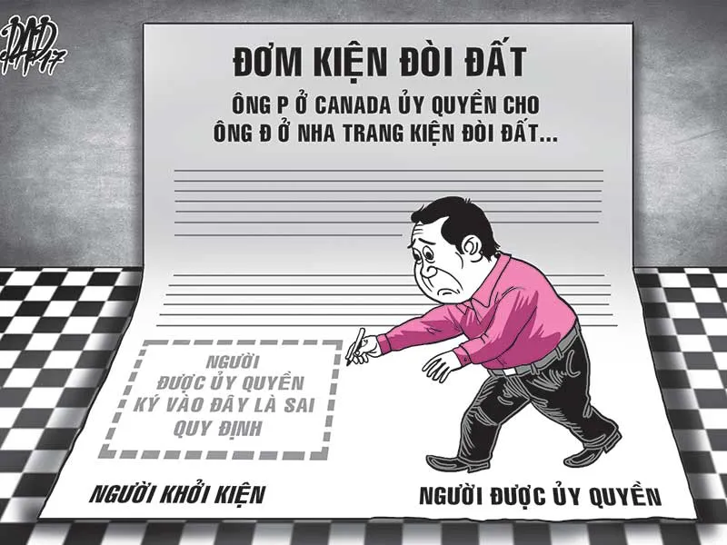Tháng 12-2016, ông Trịnh Hoài Phương (đang sống ở Canada) làm giấy ủy quyền cho ông Trịnh Phương Điền (trú TP Nha Trang, Khánh Hòa) được quyền khiếu kiện đòi tám sào đất ruộng mà theo ông Phương thì ông N. đang quản lý, sử dụng. Giấy ủy quyền này được chứng nhận tại Canada trước khi gửi về Việt Nam.