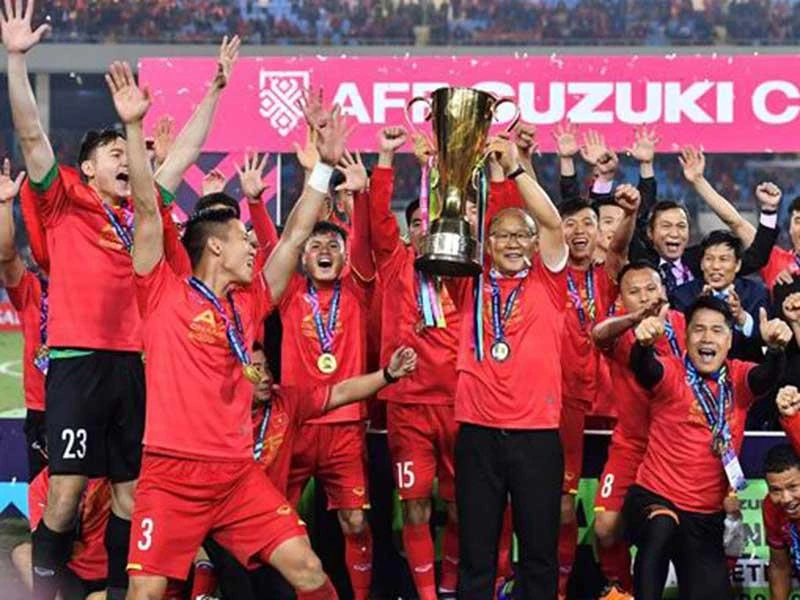 HLV Park Hang-seo với niềm vui cùng bóng đá Việt Nam lên đỉnh Đông Nam Á. Ảnh: NGỌC DUNG