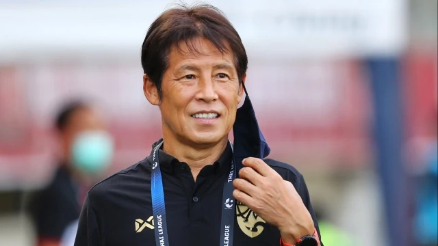 HLV Akira Nishino vui sướng khi trở lại Thái Lan tiếp tục dẫn dắt đội tuyển sau hơn một tháng không có chuyến bay đến từ Nhật. Ảnh: SS.