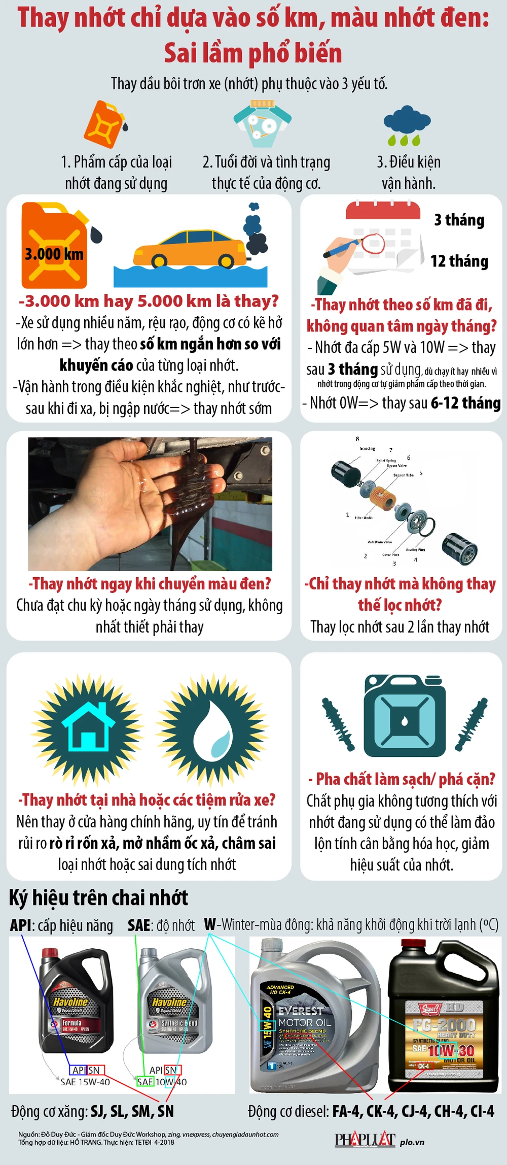 (PLO)- Các chủ xe máy, ô tô thường có xu hướng thay dầu nhớt theo chu kỳ cố định dựa trên số km, màu nhớt đen... mà quên rằng việc thay nhớt còn phụ thuộc vào rất nhiều yếu tố khác.