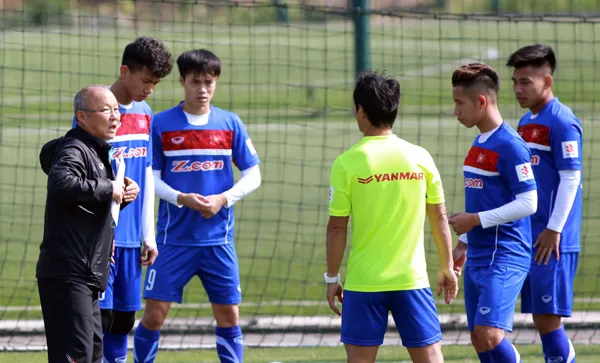 Thầy trò Park Hang-seo miệt mài trên sân tập. Ảnh: VFF