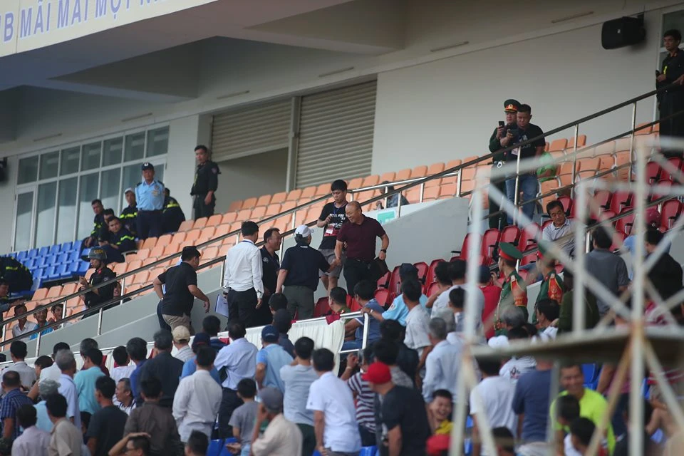 Khi HLV Park Hang-seo lên khu VIP khán đài thì cả khán đài A vỗ tay chào mừng.