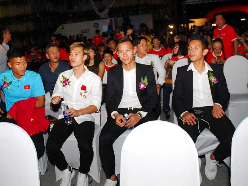 Quế Ngọc Hải (thứ hai từ phải qua) sau khi được thầy Park dạy dỗ. Ảnh: HUỲNH TRÍ DŨNG