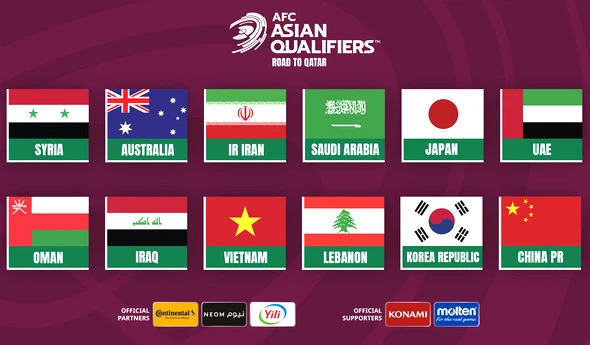 12 đội tuyển tranh tài tại vòng loại 3 World Cup 2022 khu vực châu Á. ẢNH: AFC