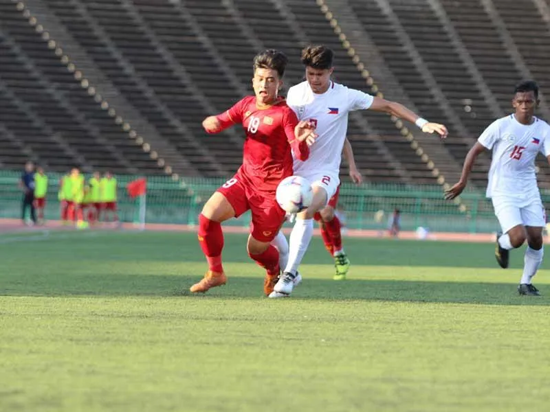U-22 Việt Nam từng thi đấu tại giải U-22 Đông Nam Á ở Campuchia trên mặt sân cỏ nhân tạo. Ảnh: VFF