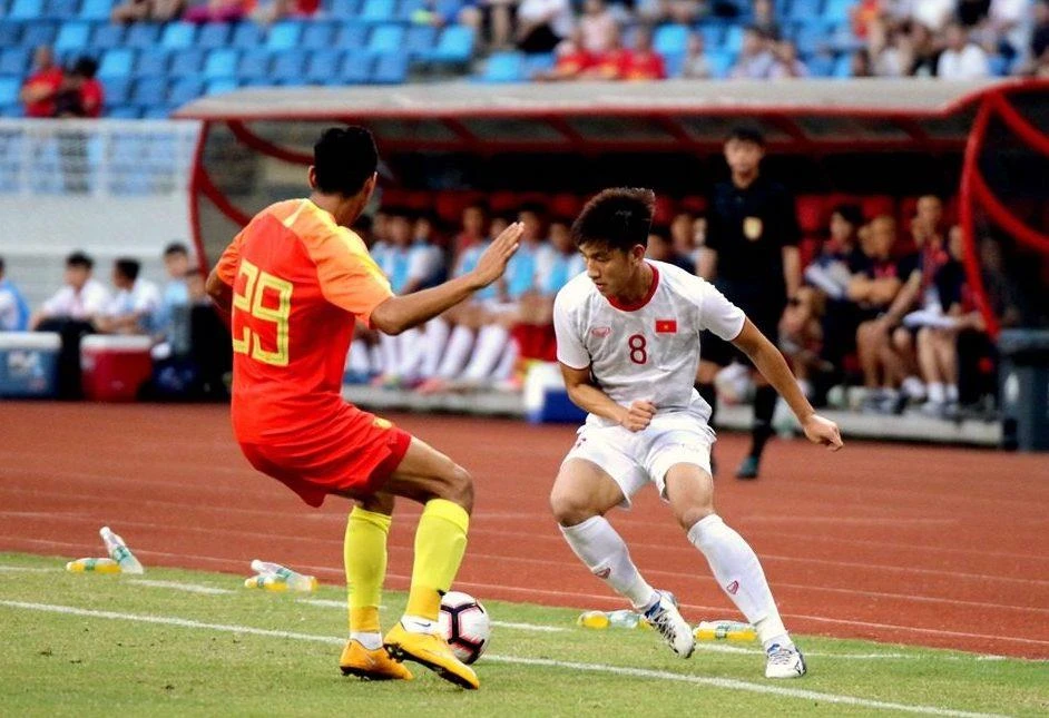 U-22 Việt Nam (áo trắng) trong trận thắng U-22 Trung Quốc 2-0. Ảnh: VFF