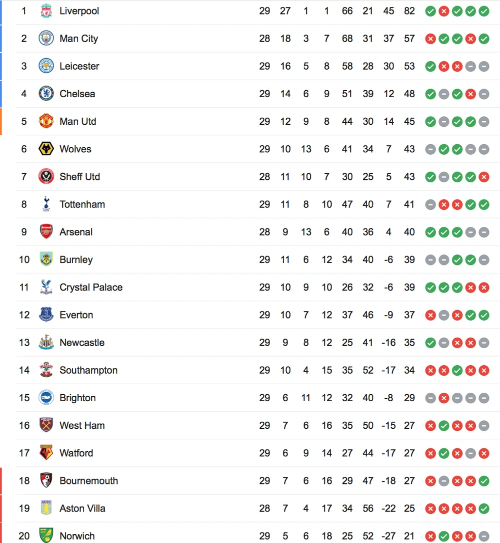 Hiện tại trên bảng xếp hạng, thầy trò HLV Klopp đang bỏ xa đội xếp thứ 2 đến 25 điểm. Chỉ cần hai trận thắng nữa, Lữ đoàn đỏ sẽ chính thức đăng quang sớm.
