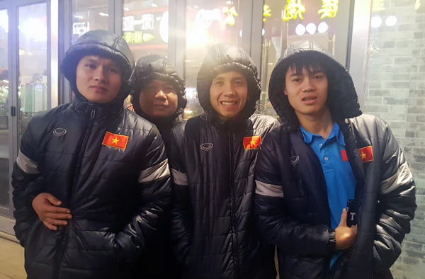 Cầu thủ U-23 Việt Nam vui vẻ dưới cái lại 1 độ C tại Thường Châu...