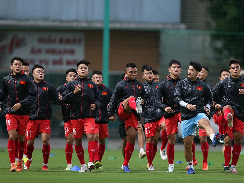 Buổi tập đầu của đội U-22 Việt Nam trong đợt tập trung tháng 11-2020. Ảnh: NGỌC DUNG