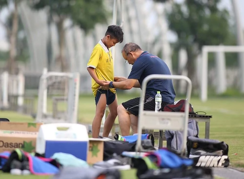 Do thiếu quân, thầy Park có lúc nhảy vào sân chơi bóng với các học trò và cũng là một cách giúp ông thư giãn lẫn ngầm kiểm tra năng lực cầu thủ.