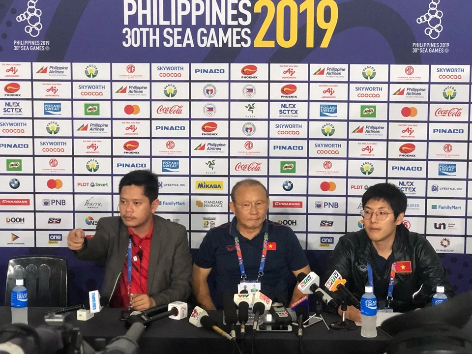 HLV Park Hang-seo trong buổi họp báo sau trận đấu. ẢNH: CÔNG TUẤN