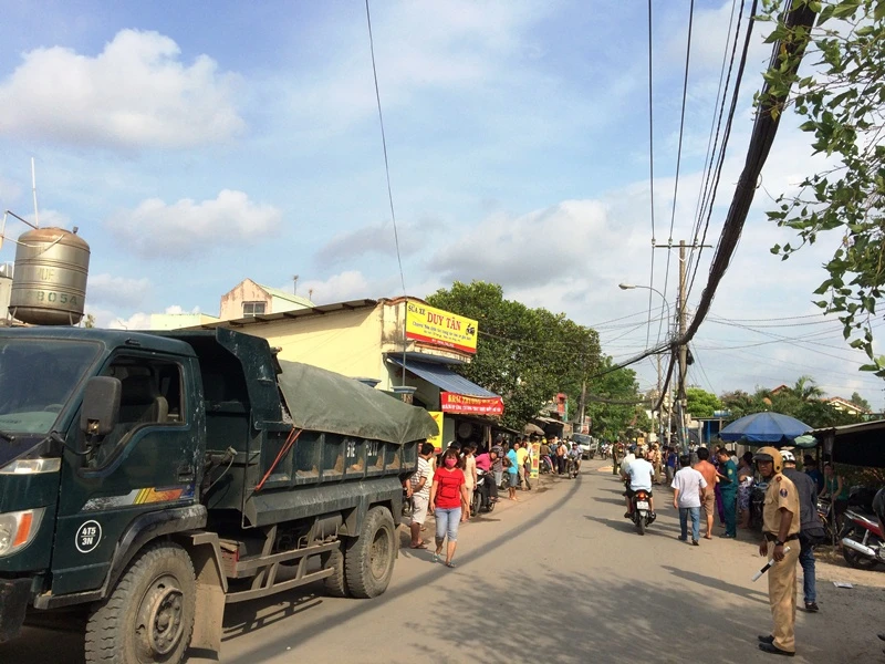 Lực lượng chức năng huyện Hóc Môn nhanh chóng có mặt phong tỏa hiện trường, điều tra nguyên nhân. Do lượng người tập trung đông khiến giao thông khu vực ùn ứ.