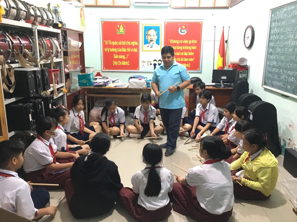 Bên cạnh việc tạo niềm hứng thú cho các em tham gia hoạt động đội, thầy còn tích cực tổ chức các chương trình để giáo dục sự chia sẻ, yêu thương cho học trò.
