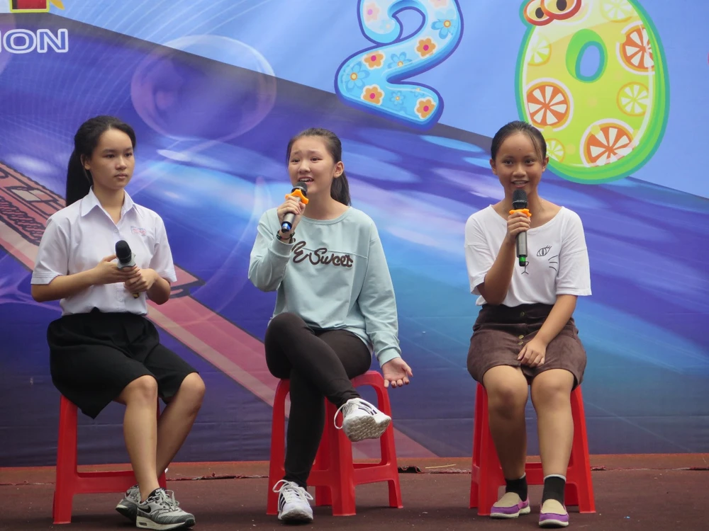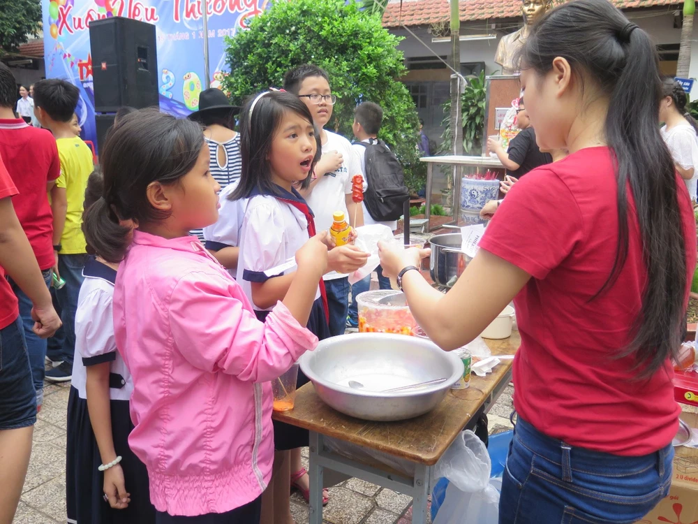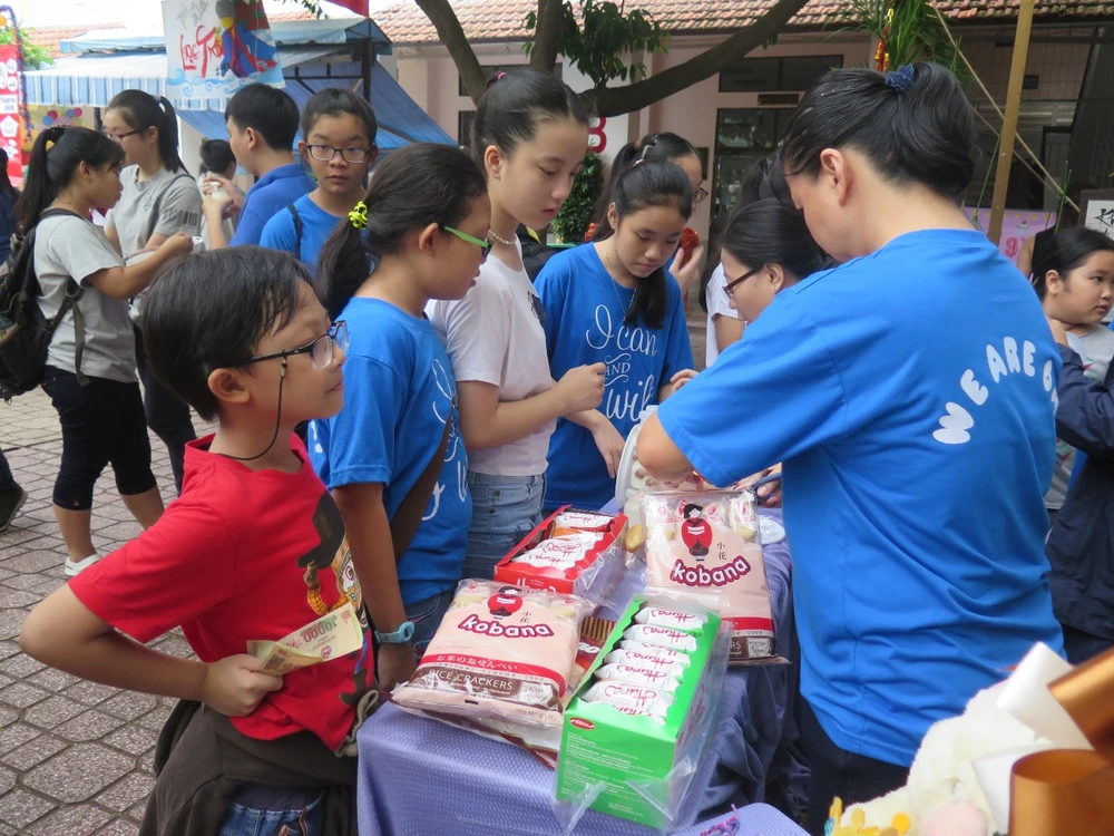 Điều đặc biệt hơn, gần 50 học sinh có hoàn cảnh khó khăn đang học tại Trường vừa học vừa làm 15/5 (quận 1) đã được nhà trường mời đến tham dự để cùng vui chơi, tham gia các gian hàng miễn phí. Đồng thời, nhà trường cũng gửi đến các em những món quà đầy ý nghĩa để chia sẻ với các em.