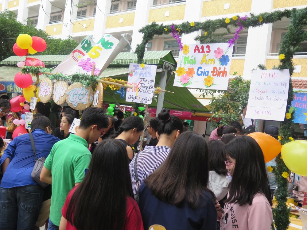 Tại đây, 56 gian hàng được trình bày bắt mắt và sinh động do chính học sinh cùng giáo viên của 56 lớp thực hiện. Ở mỗi gian hàng, thầy trò cùng trổ tài nấu ăn, làm đồ uống, hoặc trưng bày những mặt hàng handmade để bày bán hoặc tổ chức các trò chơi có thưởng như phóng phi tiêu, ném bóng vào rổ, ném lon… để thu hút mọi người.