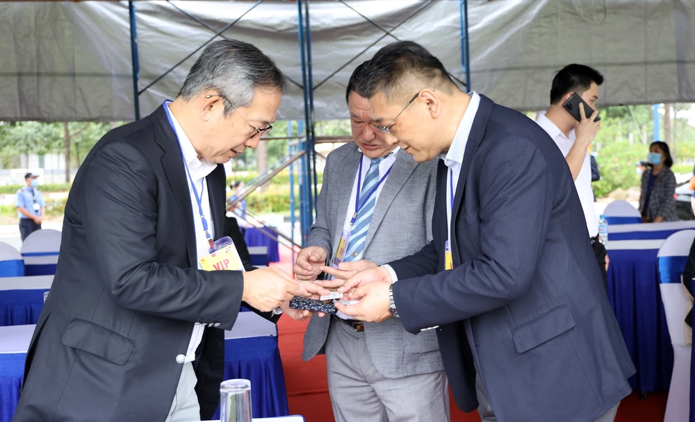 Các quan chức ngoại giao và doanh nhân Nhật trao đổi với nhau tại lễ bế mạc. Ảnh: A.P