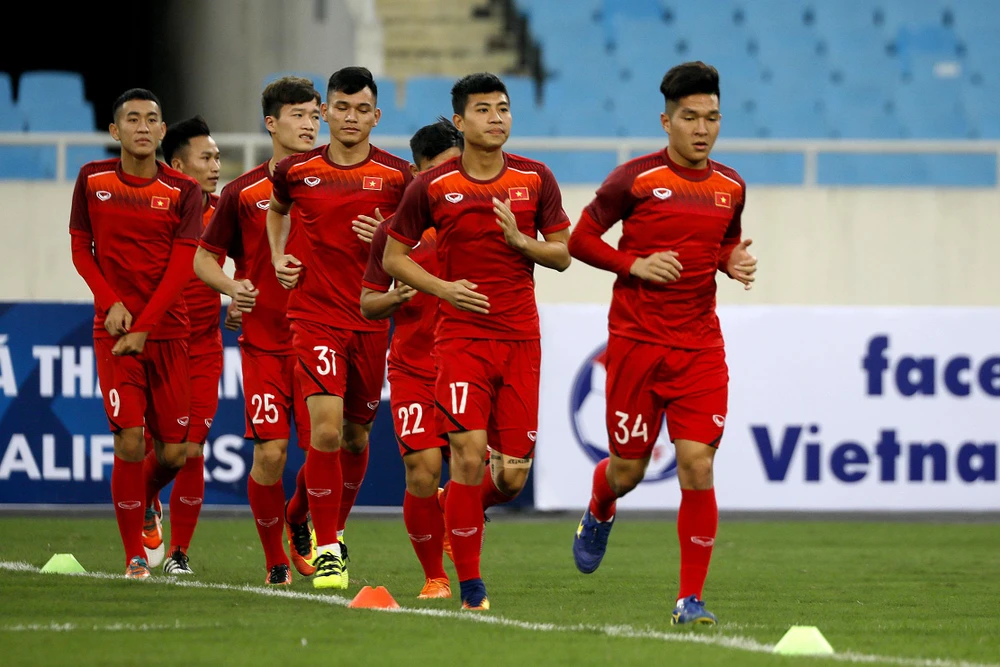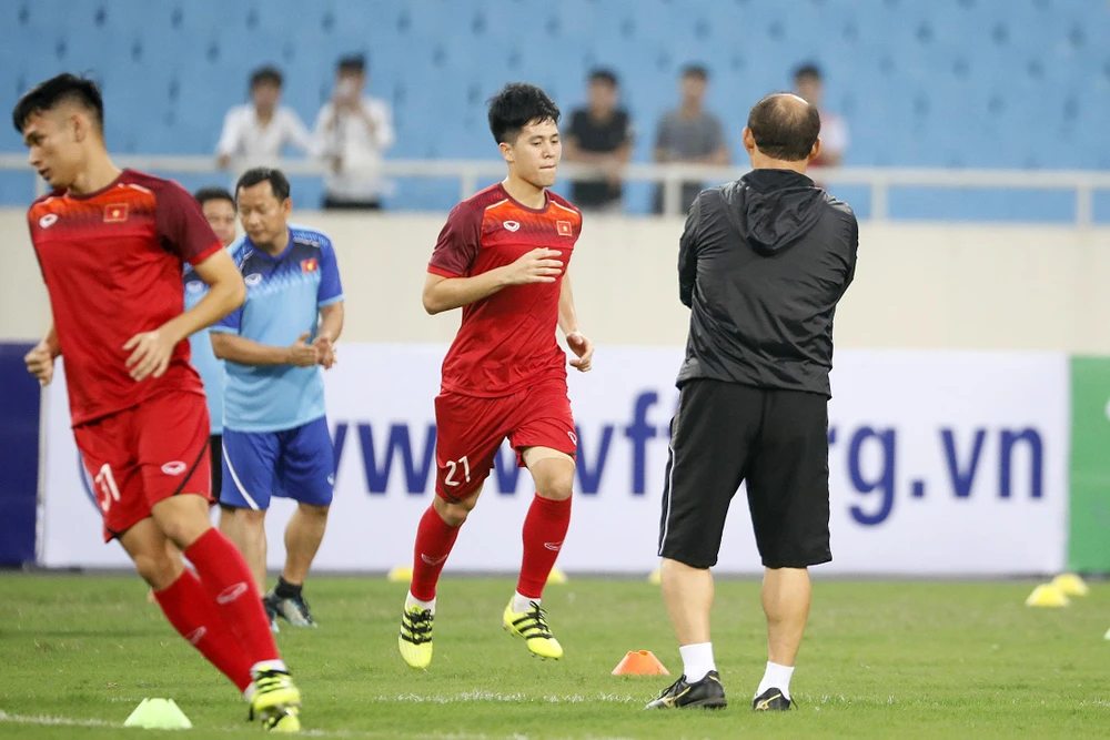 Hình ảnh thầy trò Park Hang-seo trong buổi tập cuối trước giờ ra quân: