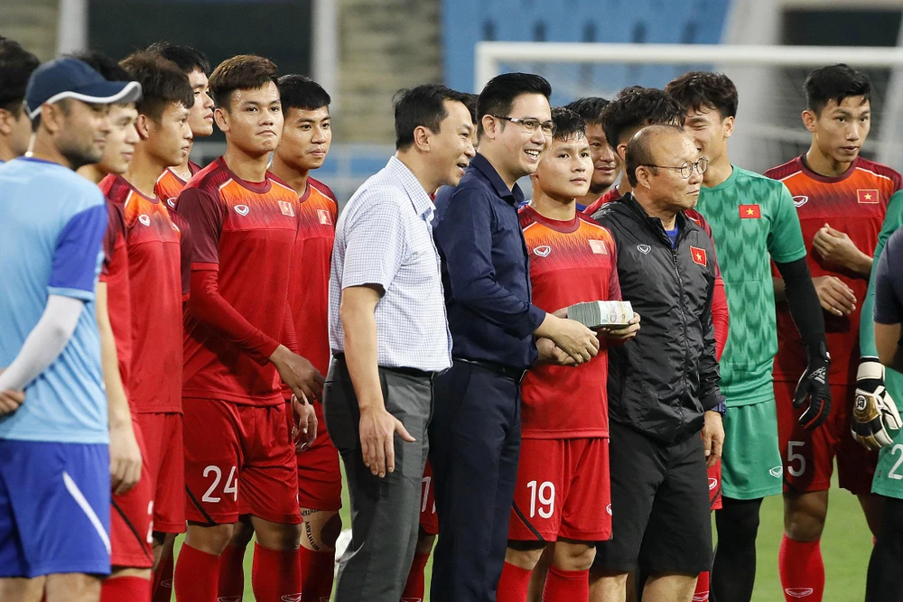 Lãnh đạo VFF động viên thầy trò Park Hang-seo trước giờ G.