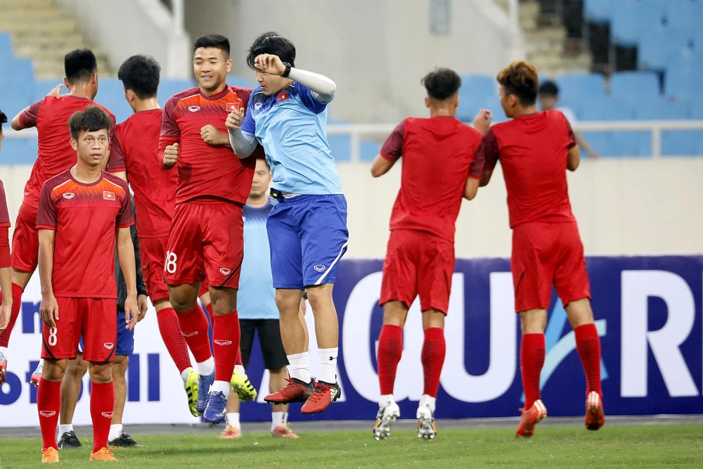 Những tân binh U-23 Việt Nam luyện tập hăng say trước giờ thử lửa.