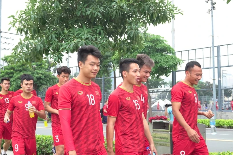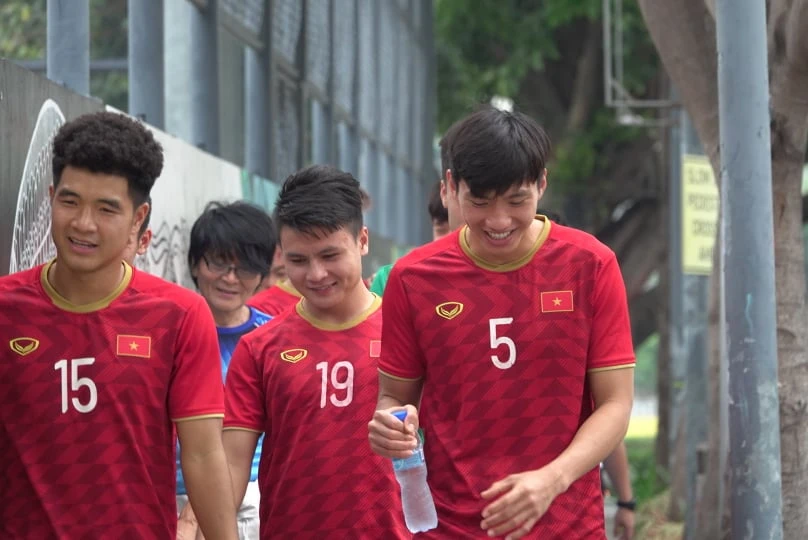 Những cầu thủ Việt Nam thư thái sau ba trận vòng bảng toàn thắng...