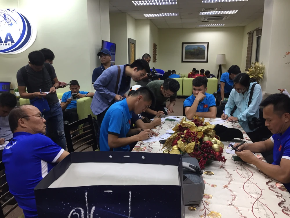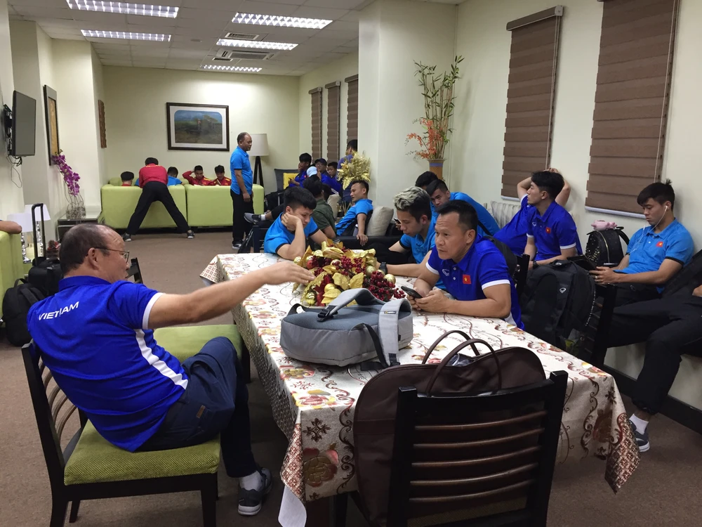 Do không có đường bay thẳng từ Hà Nội đến TP Bacolod, thầy trò Park Hang-seo đi chuyên cơ đến bất ngờ nên buộc phải có xác nhận từ cửa khẩu sân bay quốc tế Manila. Chính vì thế, đội tuyển Việt Nam phải đợi hoàn tất các thủ tục mới có thể về khách sạn nghỉ ngơi.