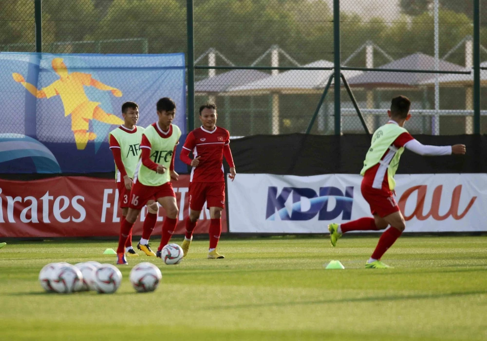 Chiều 15-1, đội tuyển Việt Nam có buổi tập làm quen sân thi đấu Hazza Bin Zayed cho trận cuối gặp Yemen lúc 23 giờ, ngày 16-1 (VTV6 trực tiếp).