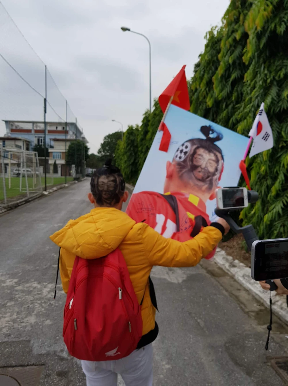 Một cổ động viên trung thành và ngộ nghĩnh với mái tóc nghệ thuật cắt theo khuôn mặt đáng yêu của HLV Park Hang-seo.